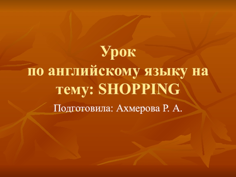 Урок  по английскому языку на тему: SHOPPINGПодготовила: Ахмерова Р. А.
