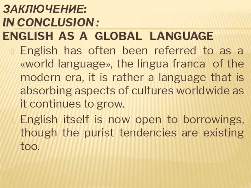 has often been referred to as a «world language», the lingua franca of the modern era, it is rather a language that is absorbing aspects of cultures worldwide as it continues to grow.