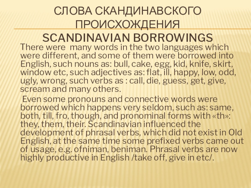 Слайд 8Скандинавские заимствования Scandinavian borrowings came with the Vikings