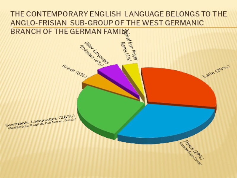 Слайд 4The Contemporary English language belongs to the Anglo-Frisian sub-group of the