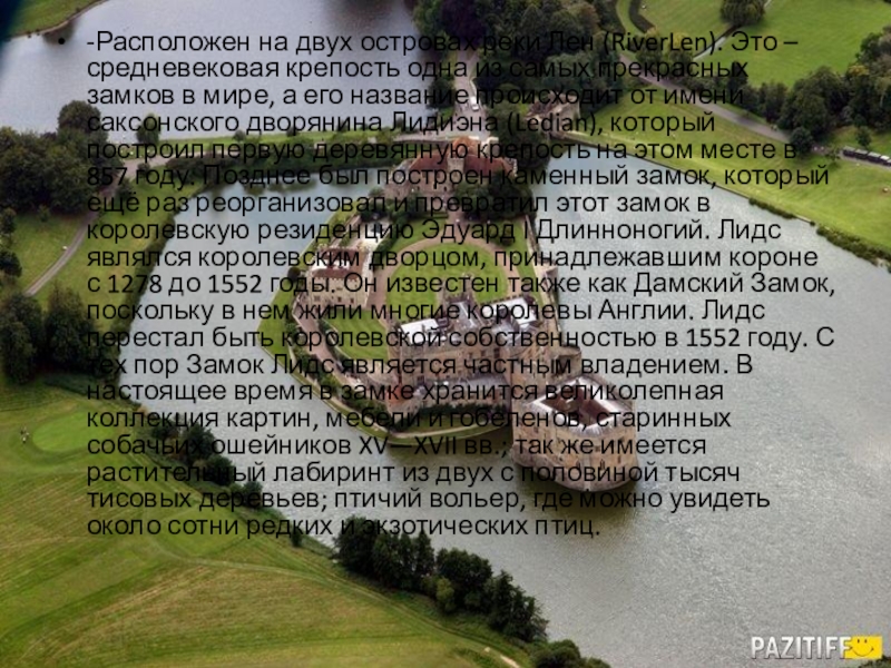 Слайд 22-Расположен на двух островах реки Лен (RiverLen). Это – средневековая крепость