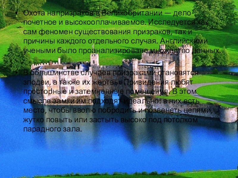 Слайд 10Охота напризраков в Великобритании — дело почетное и высокооплачиваемое. Исследуется как