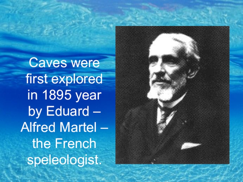 Слайд 30Caves were first explored in 1895 year by Eduard – Alfred