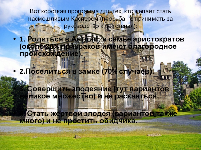 1. Родиться в Англии, в семье аристократов (около 80% призраков имеют благородное происхождение).