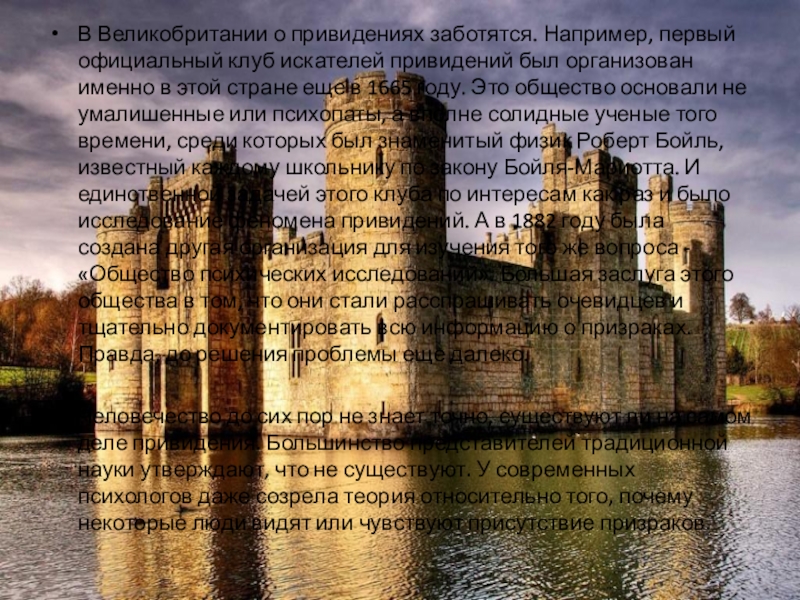 Слайд 14В Великобритании о привидениях заботятся. Например, первый официальный клуб искателей привидений