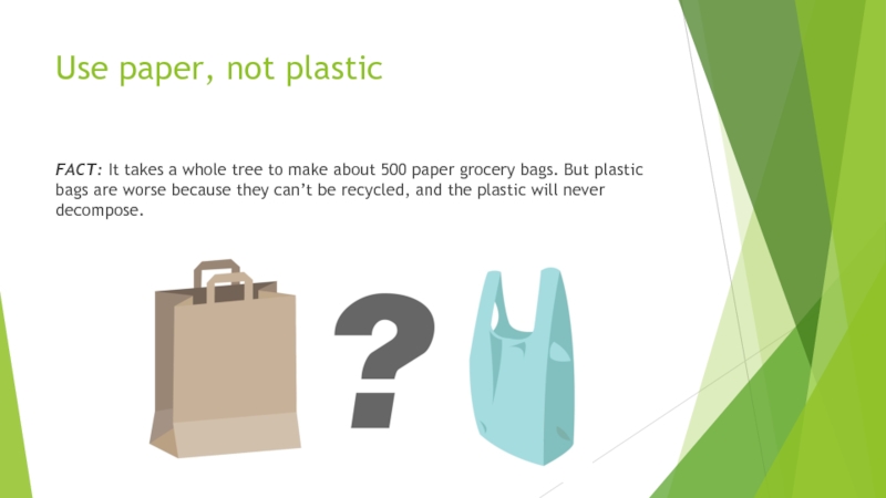 Слайд 5Use paper, not plastic