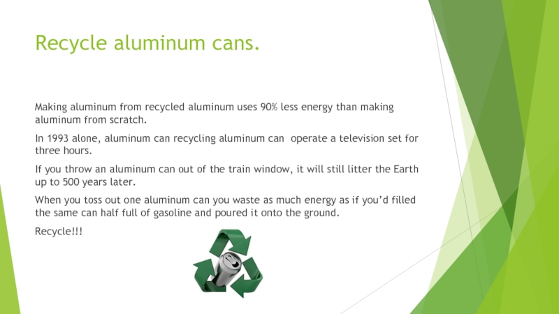 Слайд 3Recycle aluminum cans.