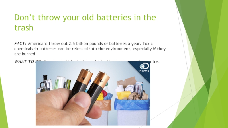Слайд 8Don’t throw your old batteries in the trash
