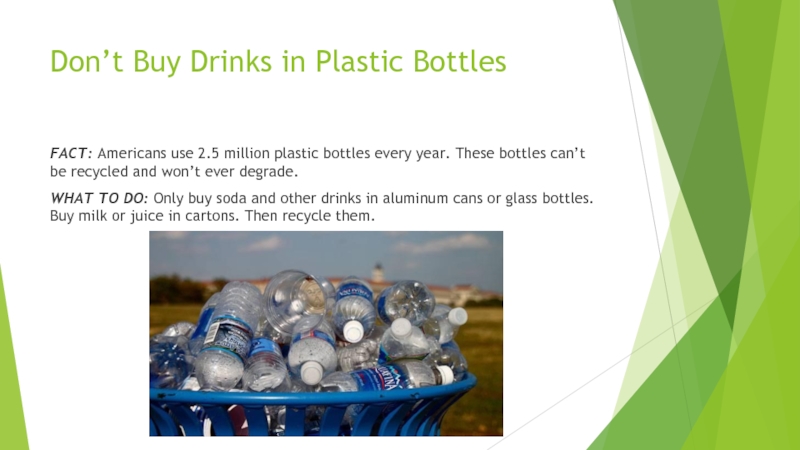 Слайд 4Don’t Buy Drinks in Plastic Bottles