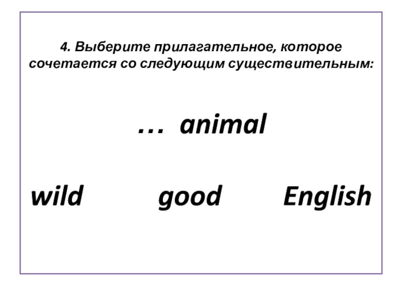 4. Выберите прилагательное, которое сочетается со следующим существительным: