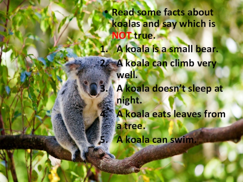 Слайд 3Read some facts about koalas and say which is NOT true.