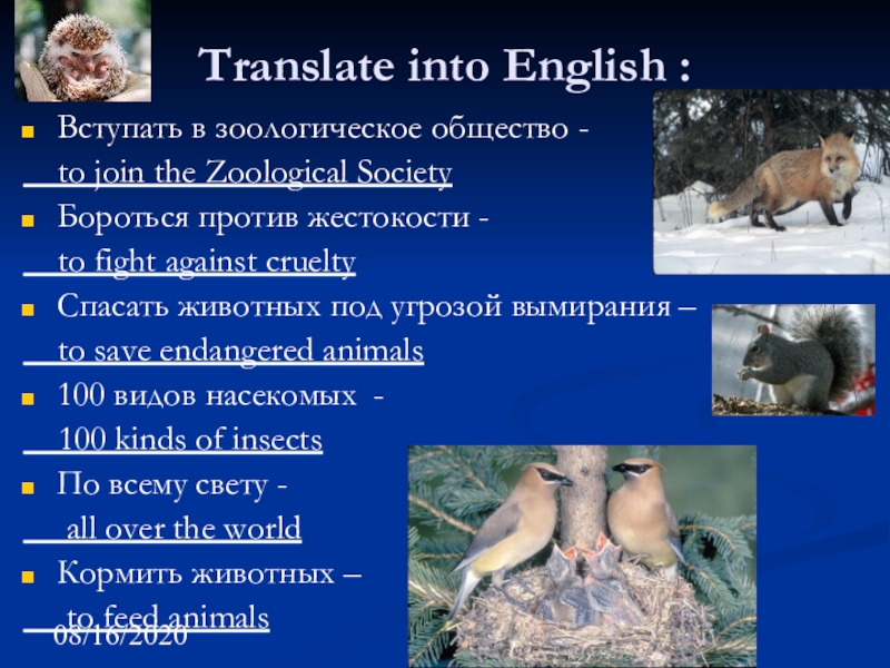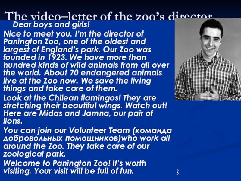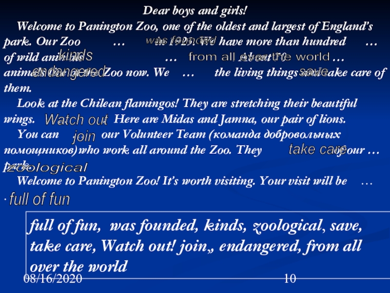 full of fun, was founded, kinds, zoological, save, take care, Watch out! join,, endangered, from all over the world