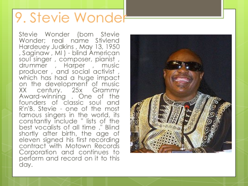 Слайд 4 9. Stevie Wonder