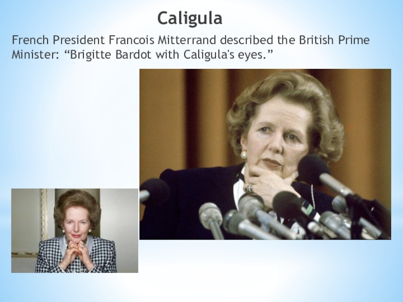 French President Francois Mitterrand described the British Prime Minister: “Brigitte Bardot with Caligula's eyes.”