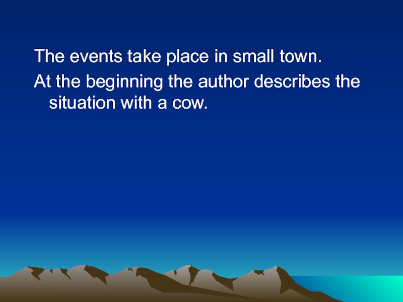 The events take place in small town. At the beginning the author describes the situation with a cow.
