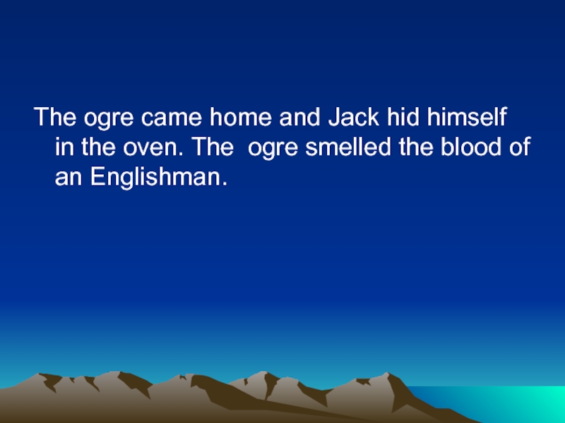 Слайд 8The ogre came home and Jack hid himself in the oven.