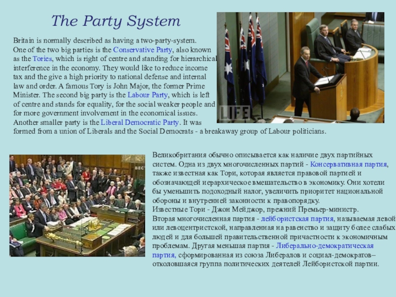 систем. Одна из двух многочисленных партий - Консервативная партия,