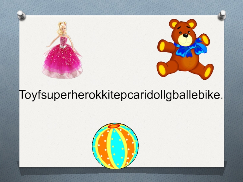 Слайд 4Toyfsuperherokkiteрcaridollgballеbike.