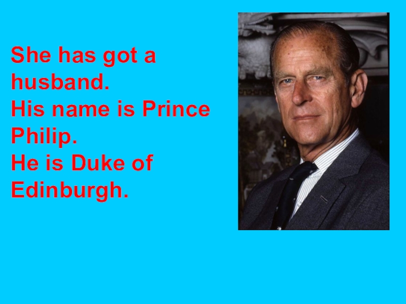 Слайд 4She has got a husband. His name is Prince Philip. He is