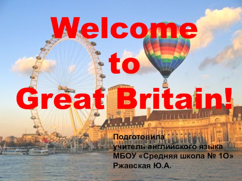 Welcome to Great Britain!Подготовилаучитель английского языкаМБОУ «Средняя школа № 1О»Ржавская Ю.А.