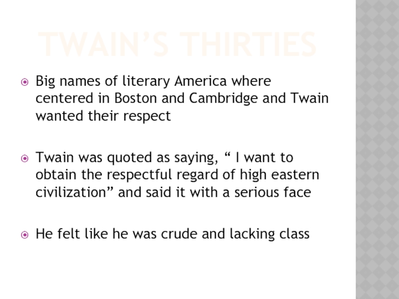 Twain was quoted as saying, “ I want to obtain the respectful regard of high eastern civilization” and said it with a serious face