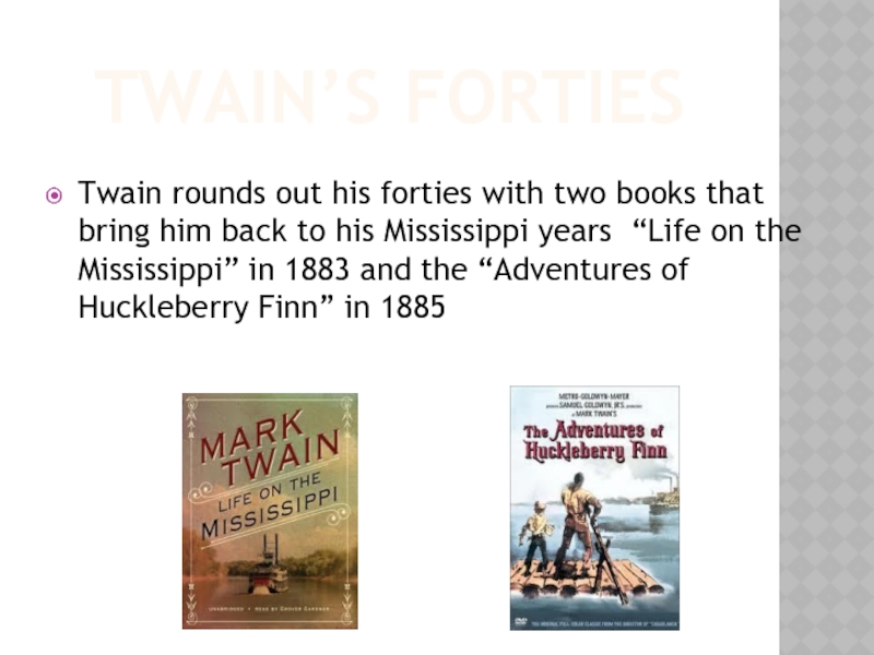 him back to his Mississippi years “Life on the Mississippi” in 1883 and the “Adventures of Huckleberry Finn” in 1885