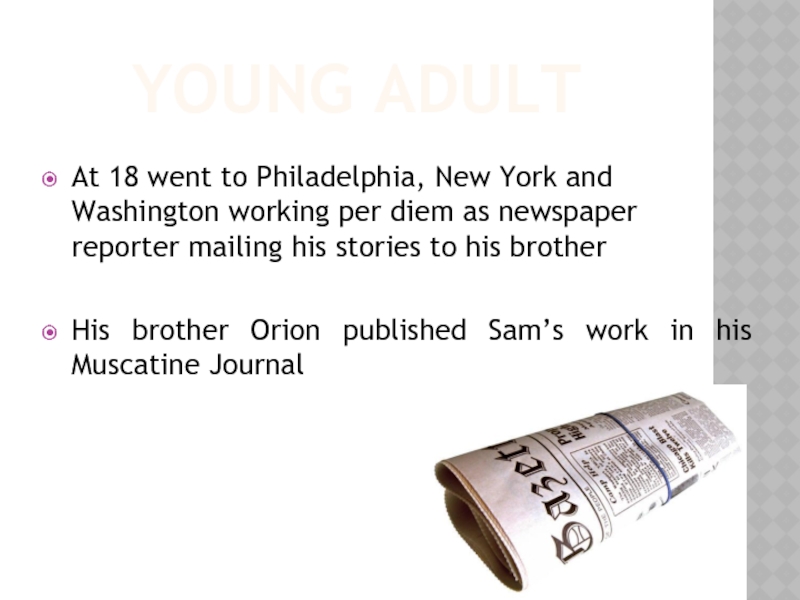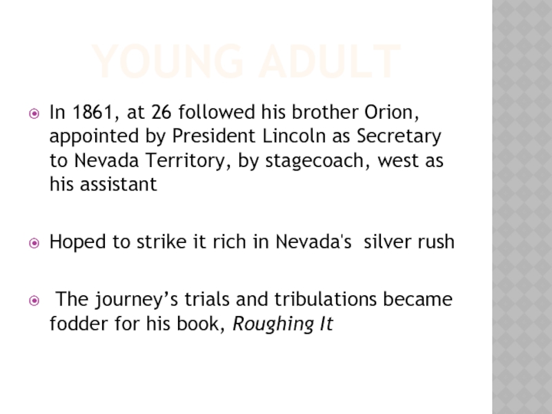 Sept. of 1861 became a writer for the Virginia City Territorial, Nevada