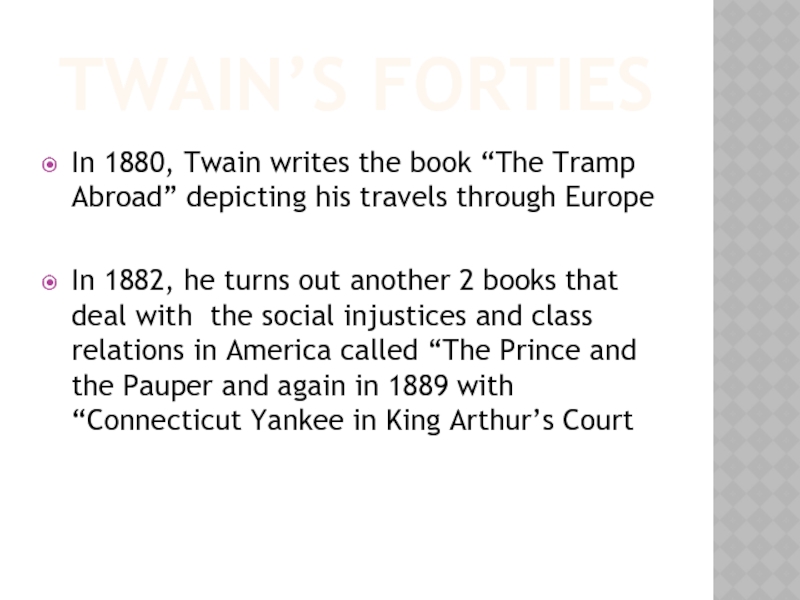 In 1882, he turns out another 2 books that deal with the social injustices and class relations in America called “The Prince and the Pauper and again in 1889 with “Connecticut Yankee in King Arthur’s Court