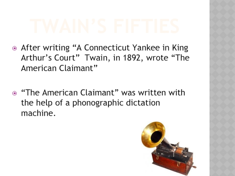 “The American Claimant” was written with the help of a phonographic dictation machine.