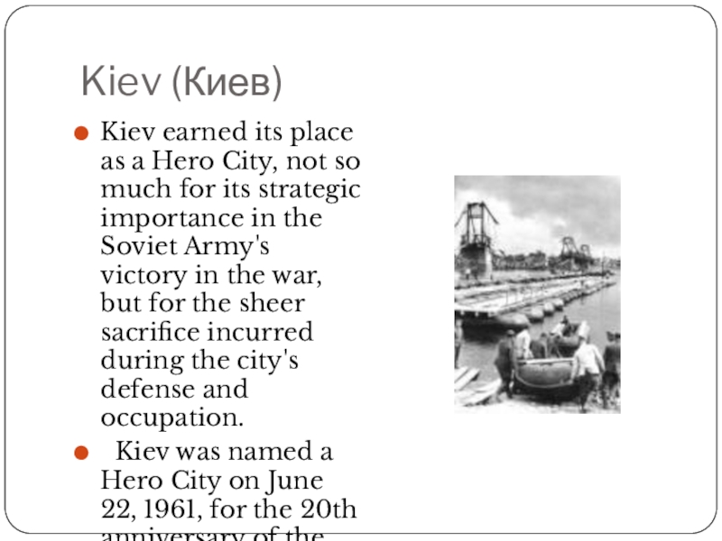 Kiev was named a Hero City on June 22, 1961, for the 20th anniversary of the start of the Great Patriotic War