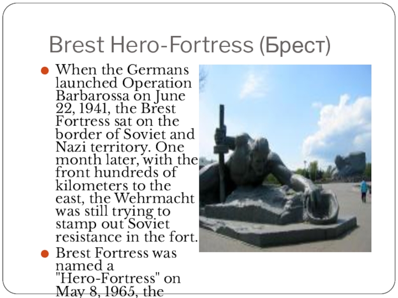 Brest Fortress was named a "Hero-Fortress" on May 8, 1965, the 20th anniversary of the victory over Nazi Germany