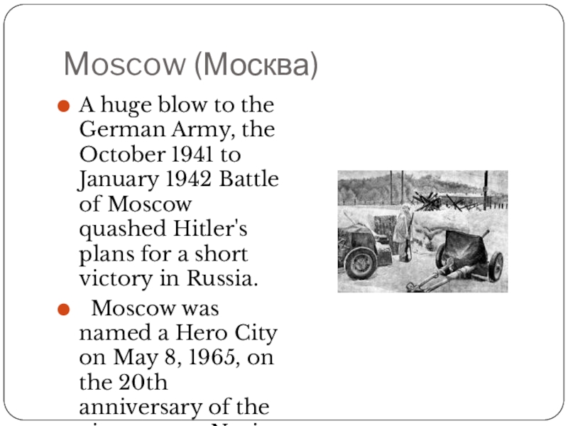 to January 1942 Battle of Moscow quashed Hitler's plans for a short victory in Russia.