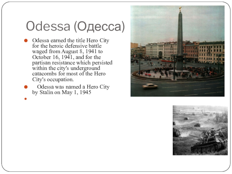 Odessa was named a Hero City by Stalin on May 1, 1945