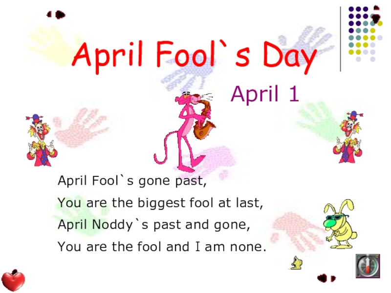 April Fool`s DayApril 1April Fool`s gone past,You are the biggest fool at last,April Noddy`s past and gone,You
