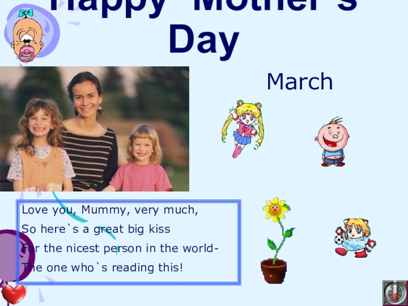 Happy Mother`s DayMarch Love you, Mummy, very much,So here`s a great big kissFor the nicest person in