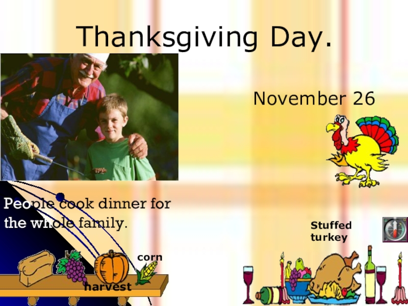 November 26harvestStuffed turkeycornPeople cook dinner for the whole family.Thanksgiving Day.