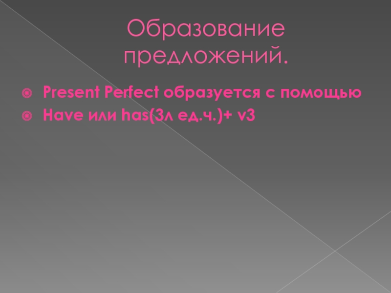 Образование предложений.Present Perfect образуется с помощьюHave или has(3л ед.ч.)+ v3