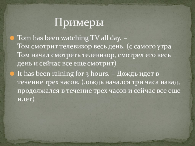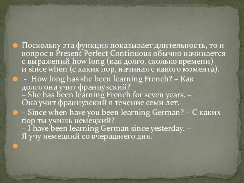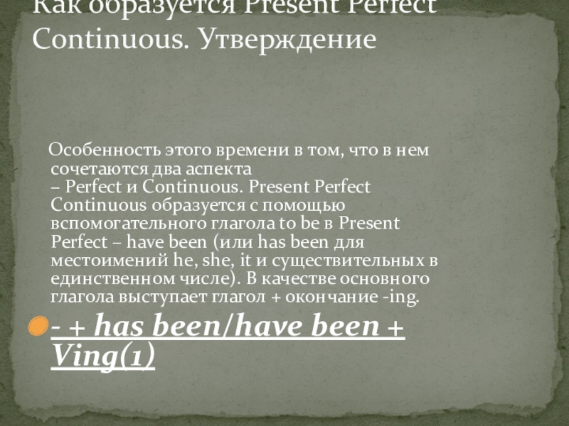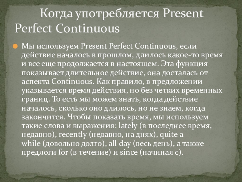 УПОТРЕБЛЕНИЕ PRESENT PERFECT CONTINUOUS