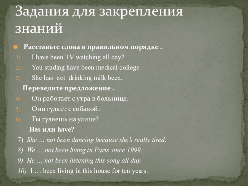 Задания для закрепления знаний