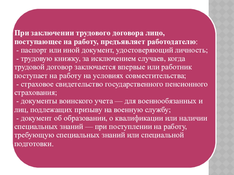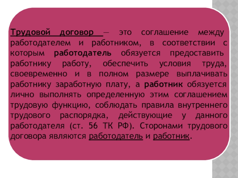 Презентация, доклад по дисциплине Правовое обеспечение профессиональной деятельности Трудовой договор
