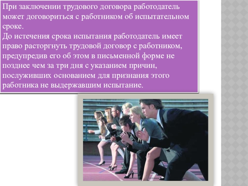 Слайд 9При заключении трудового договора работодатель может договориться с работником об испытательном
