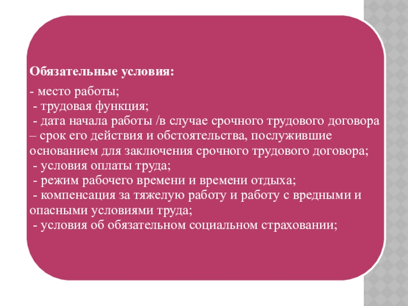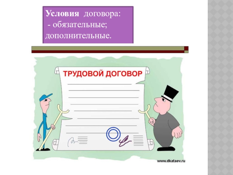 Слайд 6Условия договора: - обязательные; дополнительные.
