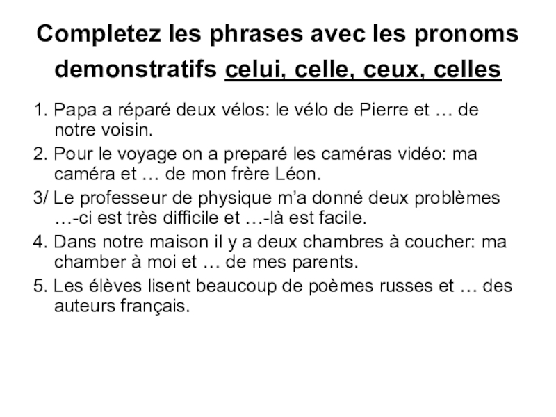 3/ Le professeur de physique m’a donné deux problèmes …-ci est très difficile et …-là est facile.