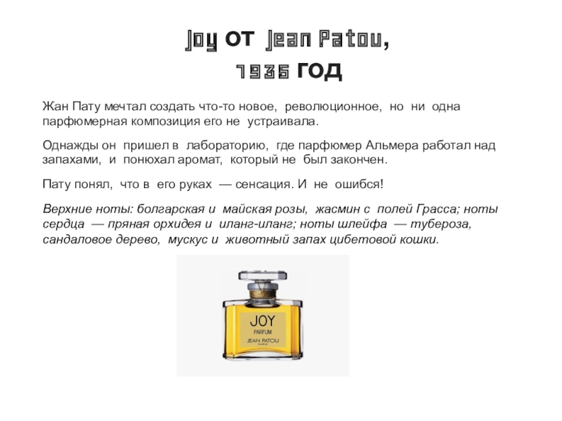 революционное, но ни одна парфюмерная композиция его не устраивала.