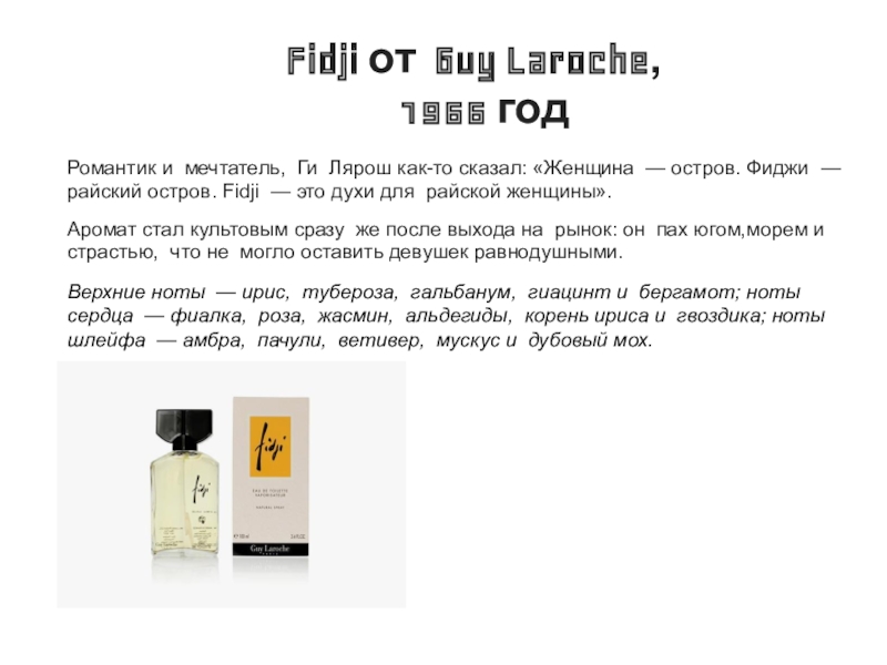 сказал: «Женщина — остров. Фиджи — райский остров. Fidji — это духи для райской женщины».
