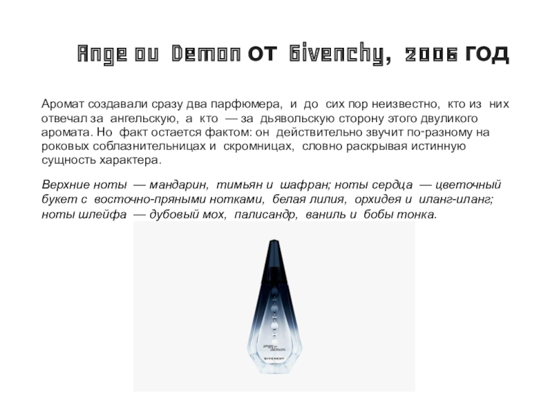 Слайд 22Ange ou Demon от Givenchy, 2006 год