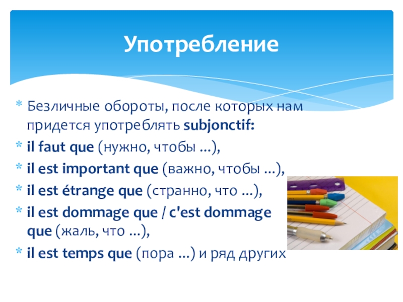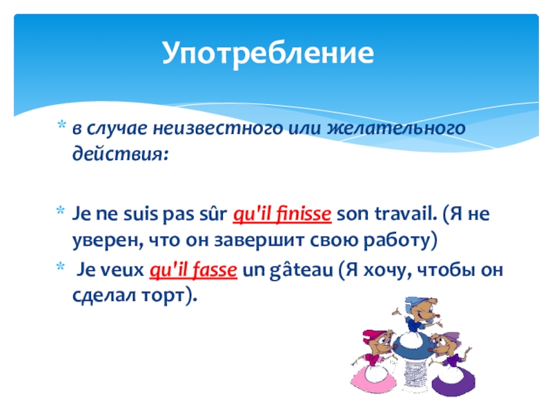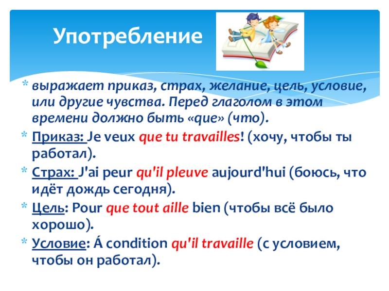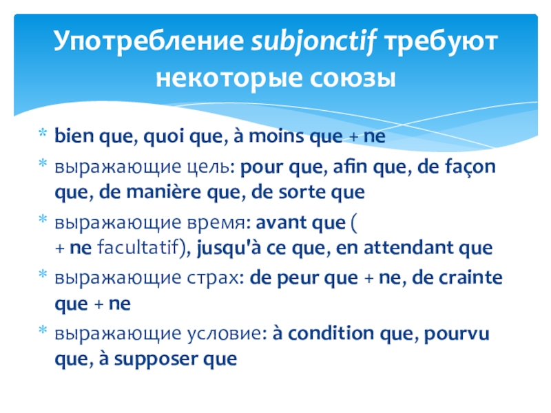 Употребление subjonctif требуют некоторые союзы