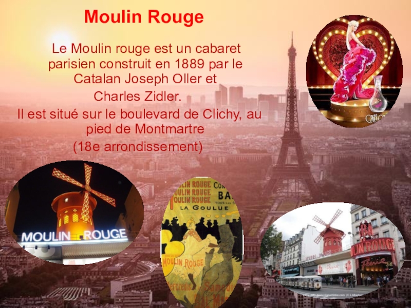 Moulin Rouge   Le Moulin rouge est un cabaret parisien construit en 1889 par le Catalan