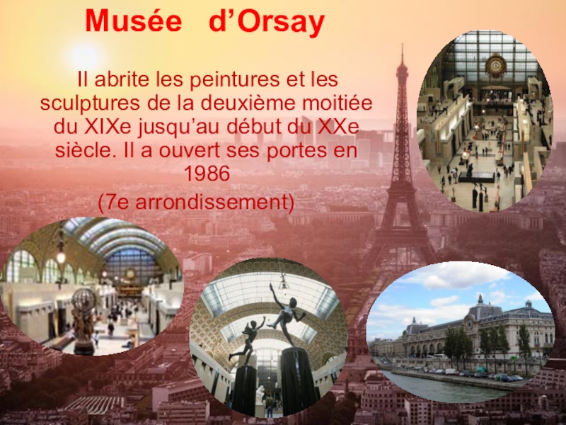 Musée  d’Orsay   Il abrite les peintures et les sculptures de la deuxième moitiée du