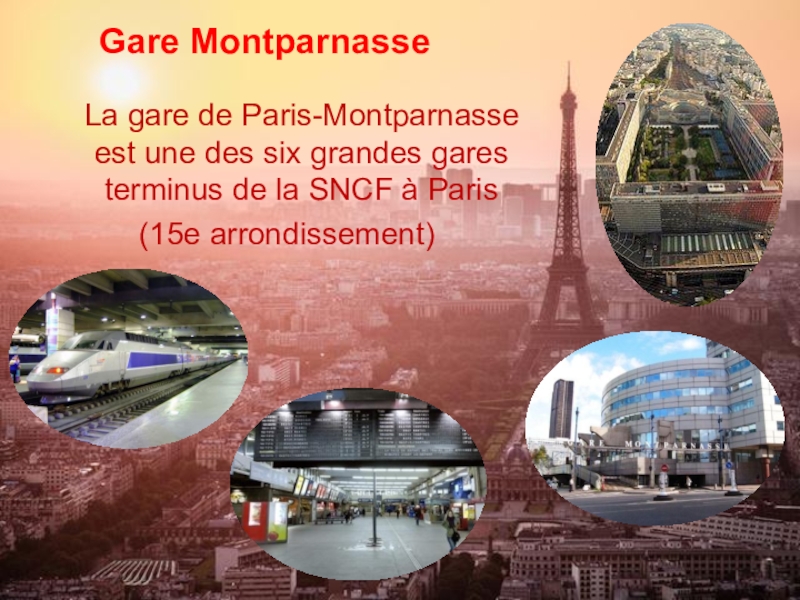 Gare Montparnasse La gare de Paris-Montparnasse est une des six grandes gares terminus de la SNCF à Paris (15e arrondissement)